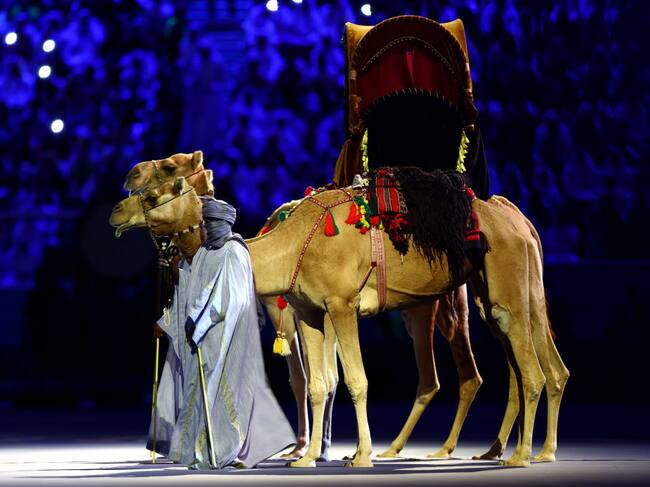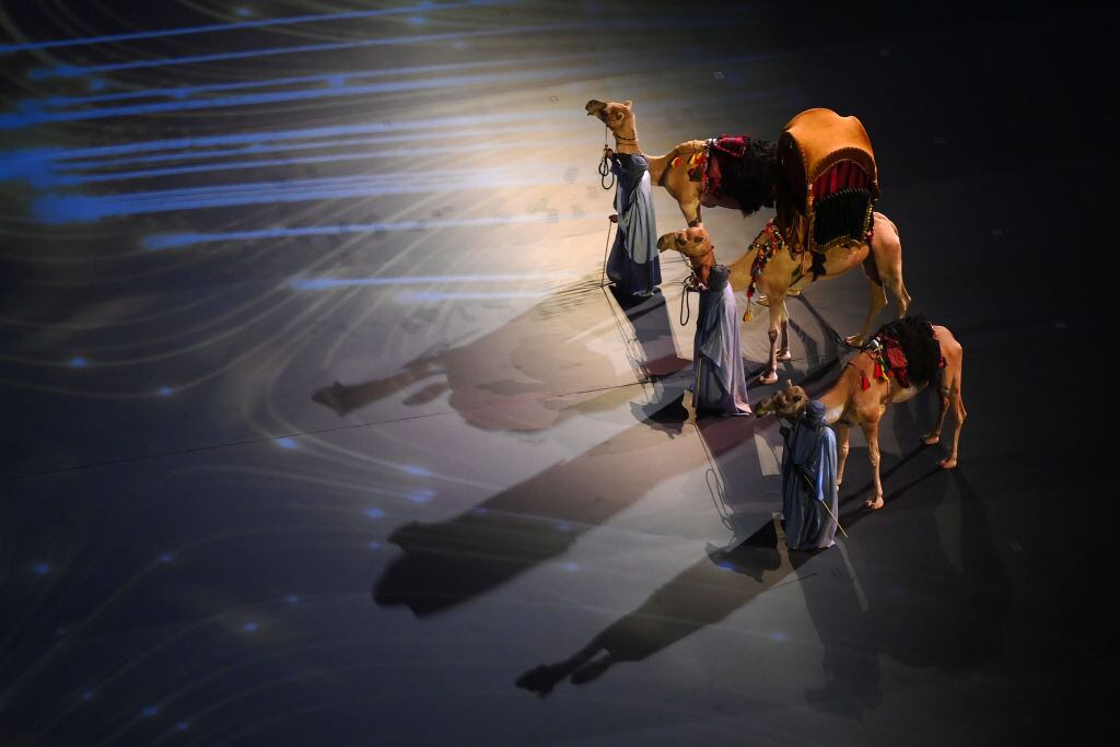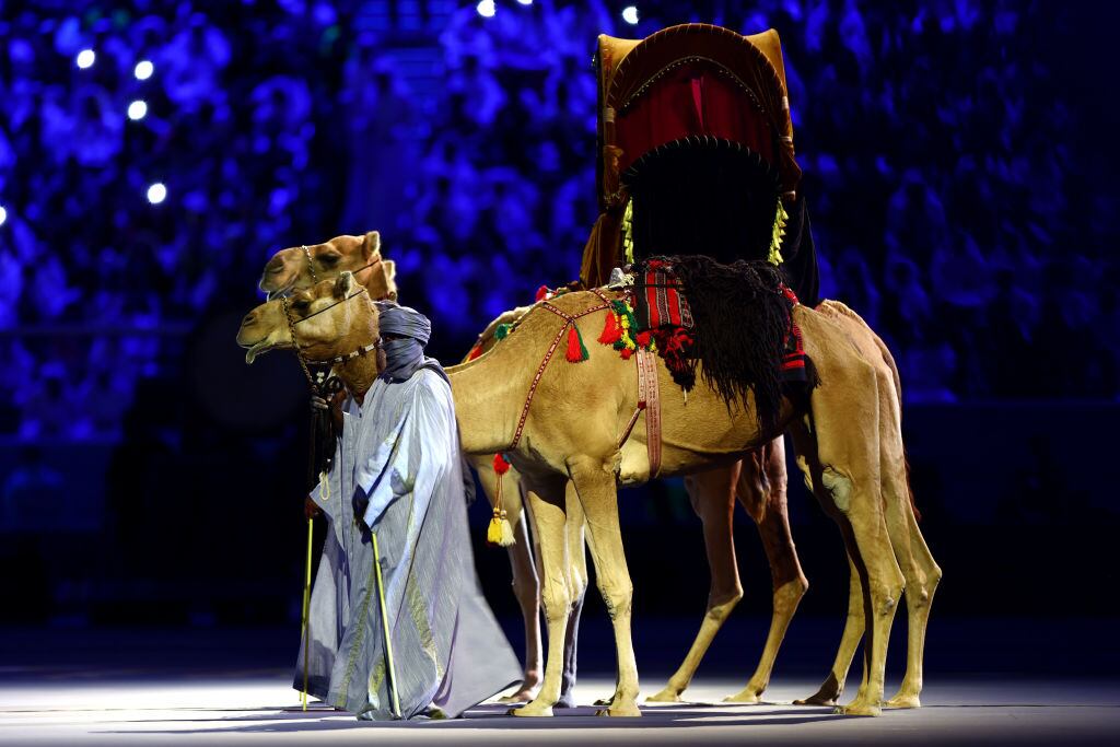 AL KHOR, QATAR - NOVEMBER 20: Camels are seen during the opening ceremony prior to the FIFA World Cup Qatar 2022 Group A match between Qatar and Ecuador at Al Bayt Stadium on November 20, 2022 in Al Khor, Qatar. (Photo by Laurence Griffiths/Getty Images) / Laurence Griffiths