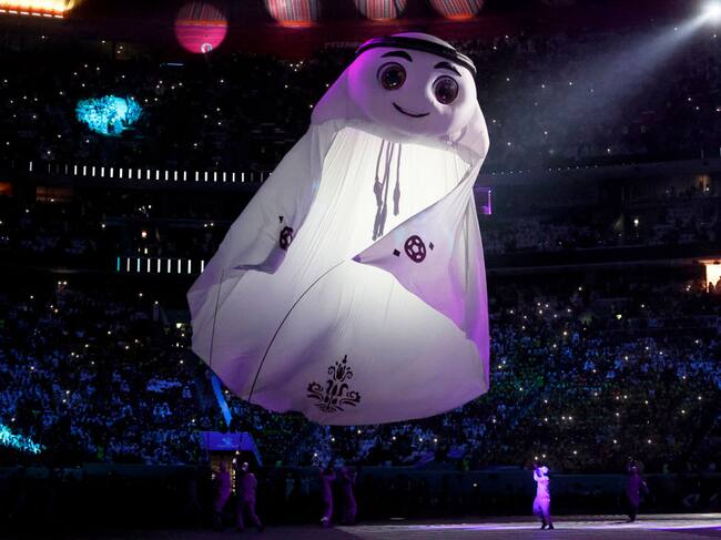 AL KHOR, QATAR - NOVEMBER 20: Laeeb the FIFA World Cup Qatar 2022 mascot during the opening ceremony of the FIFA World Cup Qatar 2022 Group A match between Qatar and Ecuador at Al Bayt Stadium on November 20, 2022 in Al Khor, Qatar. (Photo by James Williamson - AMA/Getty Images) / James Williamson - AMA