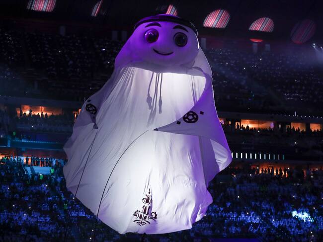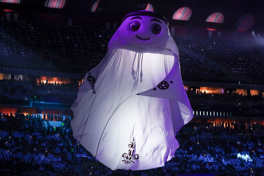 AL KHOR, QATAR - NOVEMBER 20: La'eeb the Official Mascot during the opening ceremony before the FIFA World Cup Qatar 2022 Group A match between Qatar and Ecuador at Al Bayt Stadium on November 20, 2022 in Al Khor, Qatar. (Photo by Richard Sellers/Getty Images) / Richard Sellers