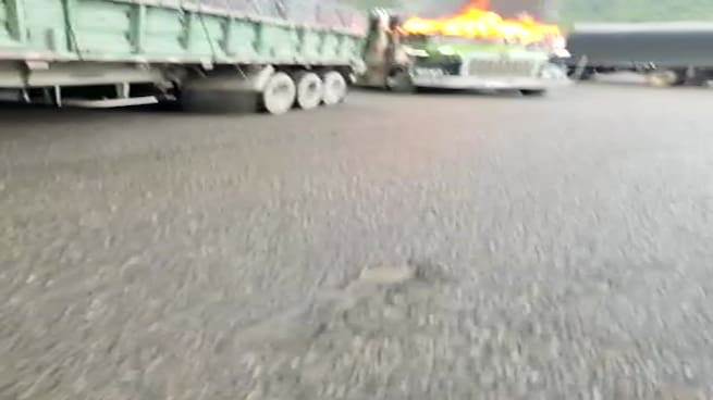 Autoridades reportan la incineración de varios vehículos de carga en la vía Cúcuta-Ocaña.