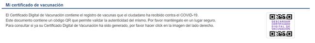 Ya allí, debajo de su nombre le saldrá un apartado que dice: Mi certificado de vacunación, y al lado, entre un código QR, dirá ‘descargar certificado digital de vacunación’