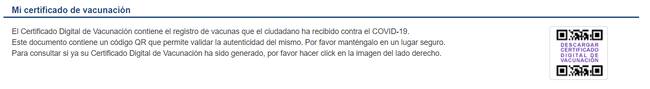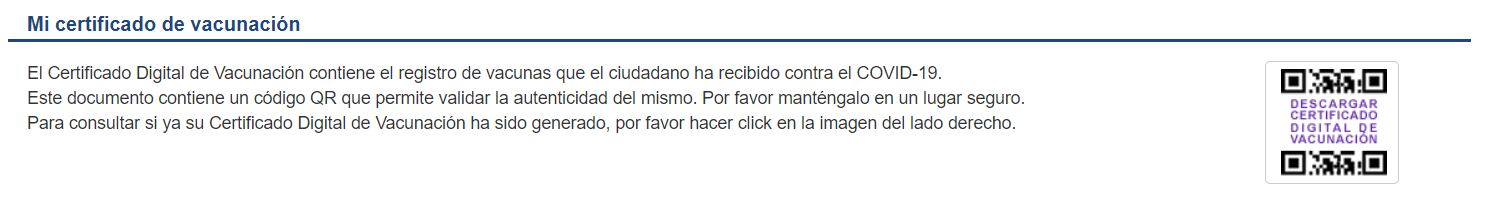 Ya allí, debajo de su nombre le saldrá un apartado que dice: Mi certificado de vacunación, y al lado, entre un código QR, dirá ‘descargar certificado digital de vacunación’