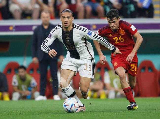 Leroy Sané (Alemania) y Pedri (España). España vs Alemania Mundial de Qatar 2022. Foto: Richard Sellers/Getty Images / Richard Sellers