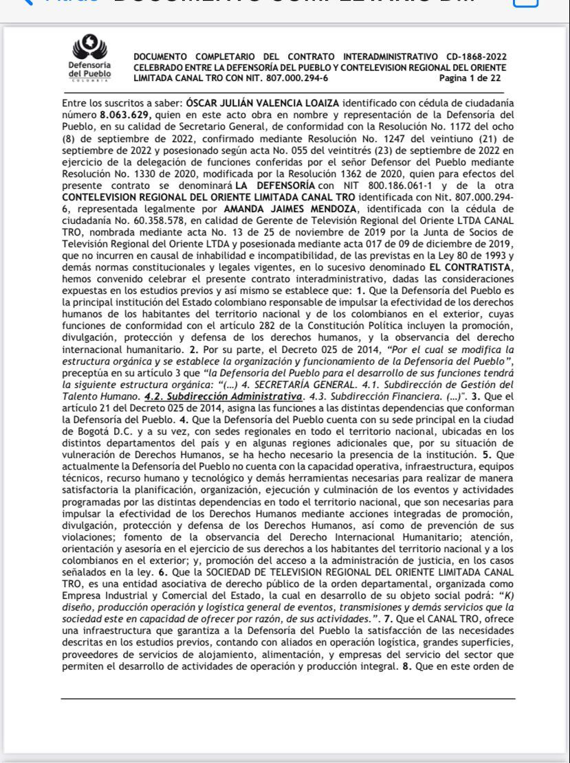 El primer contrato se le entregó al canal regional TRO y el segundo se le adjudicó a una universidad de Medellín. La Defensoría asegura que los contratos se ajustan a la ley.