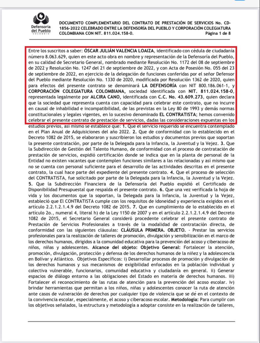 El valor inicial de este contrato es de 700 millones de pesos y será entregado a la Corporación Colegiatura Colombiana.