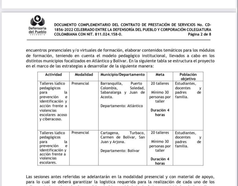 El segundo contrato se adjudicó a una universidad de Medellín, a pesar de que en la Defensoría hay funcionarios que cuentan con la experiencia y conocimiento para hacer las capacitaciones.
