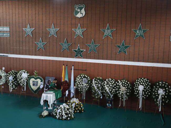 Rodeado de coronas de flores en la sede administrativa del Deportivo Cali, familiares, amigos y futbolistas acompañaron el féretro en la ciudad que fue la primera casa del jugador.