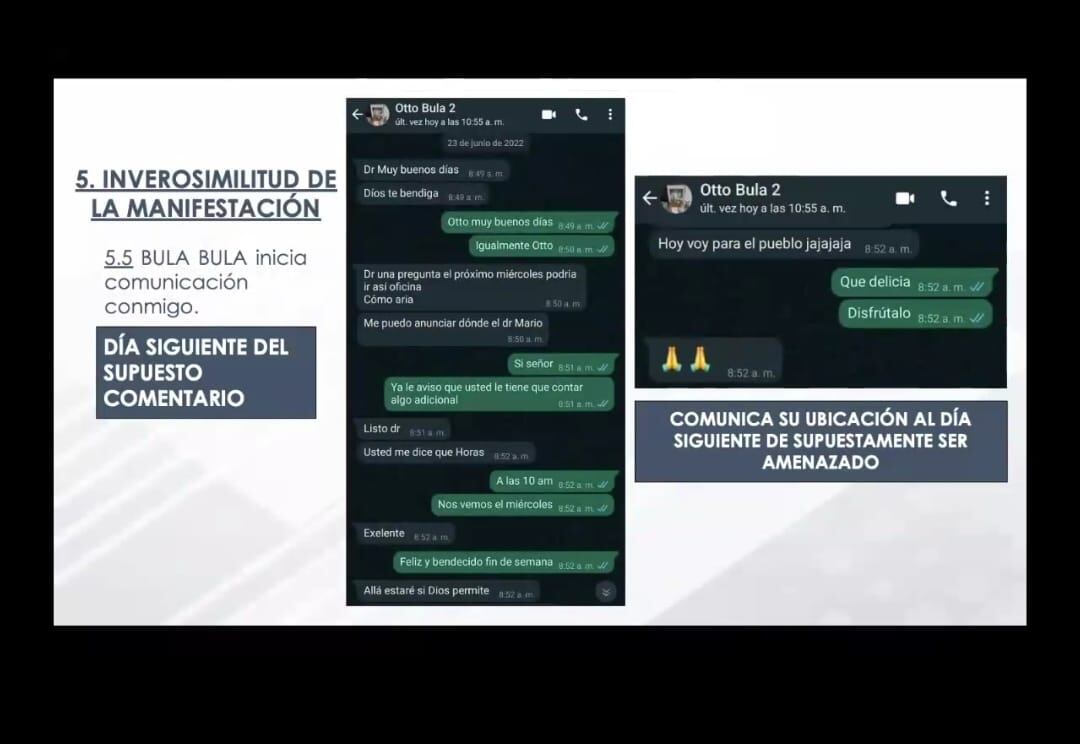 También señaló que Bula le mintió a la Fiscalía e indicó que luego de la supuesta amenaza en su contra que supuestamente ocurrió el 22 de junio de este año, Otto Bula lo buscó al otro día.