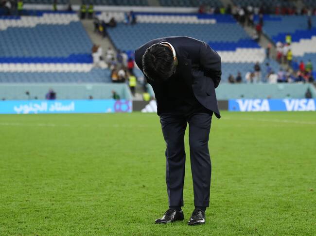 Japón vs Croacia. Hajime Moriyasu entrenador de Japón agradece a los aficionados nipones tras quedar eliminado del Mundial de Qatar 2022. Foto: Mike Hewitt - FIFA/FIFA via Getty Images / Mike Hewitt