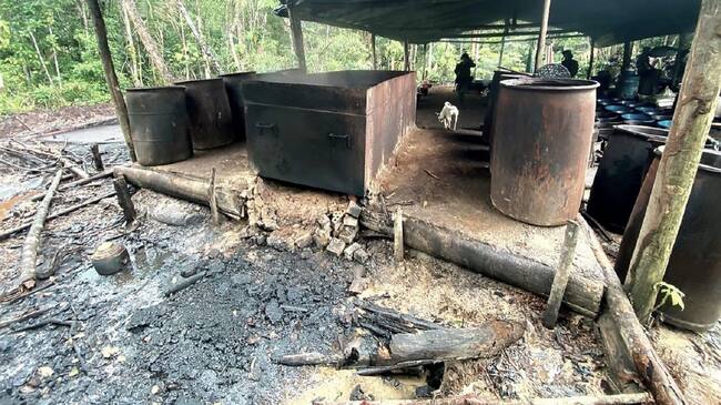 “Las tropas allanaron estas dos estructuras ilegales que conformaban dicho complejo de sustancias químicas ilícitas, pertenecientes, al GAO ELN, en donde se encontraron 1.930 kilogramos de insumos sólidos, 2.430 galones de insumos líquidos, 1.100 galones de combustible entre Gasolina, ACPM y diferentes maquinarias y equipos que eran utilizados para el procesamiento y distribución de la pasta base de coca”, informó el coronel Diego Jaramillo Muñoz, comandante de la Fuerza de Tarea Vulcano.