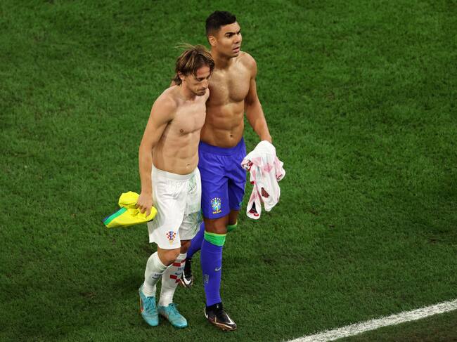 Luka Modric y Carlos Henrique Casemiro se intercambiaron la camiseta al descanso del partido de cuartos de final del Mundial de Catar 2022 que enfrenta a Croacia y Brasil en el estadio Ciudad de la Educación, en el que fue su reencuentro después de ocho temporadas en las que, junto al alemán Toni Kroos, formaron un centro del campo histórico en el Real Madrid.