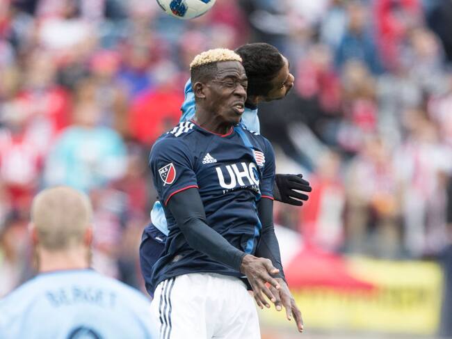 Wilfried Zahibo #23 of New England Revolution and Yangel Herrera #30 of New York City (Photo by Tim Clayton/Corbis via Getty Images) / Tim Clayton - Corbis