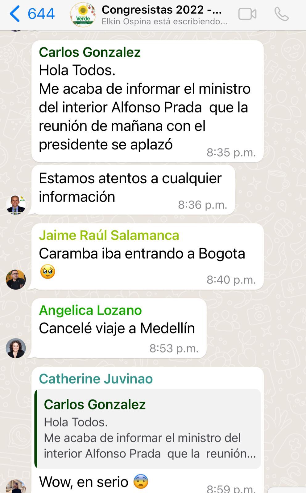 La W conoció los chats de bancada, donde congresistas como Jaime Raúl Salamanca y Angélica Lozano afirmaron que ya estaban listos y habían modificado sus agendas para asistir, por lo cual no escondieron su inconformidad frente a lo ocurrido.