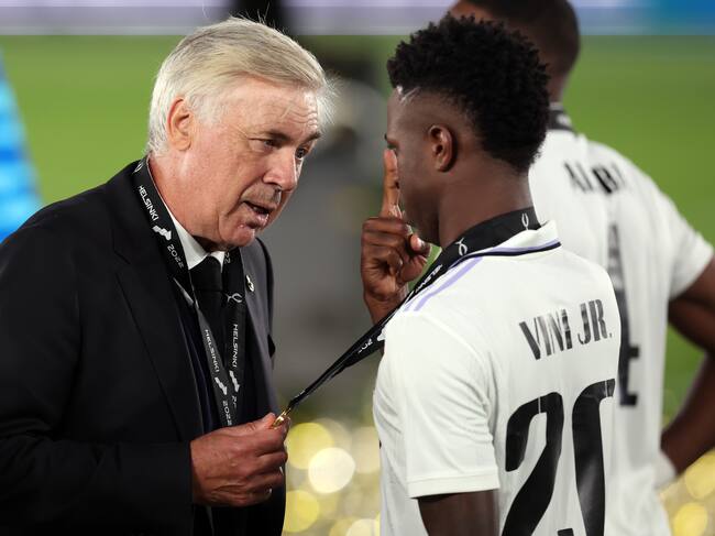 Carlo Ancelotti junto a Vinicius Junior en el Real Madrid. (Photo by Alex Grimm/Getty Images)