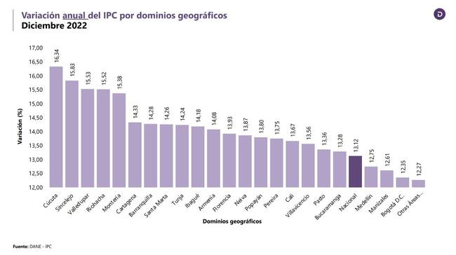 Tras el último informe presentado por el Departamento Administrativo Nacional de Estadística (DANE) se dio a conocer que el país terminó el 2022 con la inflación de 13,12%, la cifra más alta desde hace varios años. Bucaramanga se ubicó en el cuarto lugar con 13,28%, por encima de ciudades como Bogotá D.C., Manizales y Medellín.