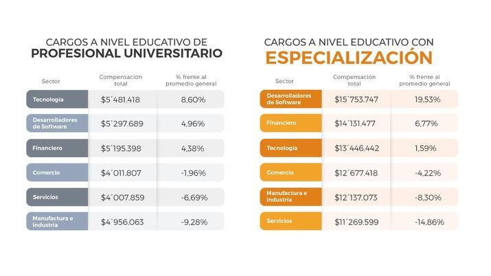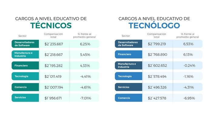 De acuerdo con esta situación, elempleo.com y la consultora Talent Advisor implementaron la ‘Encuesta Punto Salarial 2022-2023′ para determinar cuáles son los mejores empleos pagos en el país, conforme a las estadísticas publicadas se concluyó que: el sector financiero y tecnológico dejan grandes remuneraciones para los técnicos, tecnólogos, profesionales y personas con especialización.