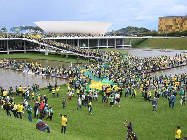 Los extremistas, en su mayoría con camisetas amarillas y verdes y banderas de Brasil, también atacaron algunos vehículos de la Policía Legislativa, que brinda seguridad al Congreso.