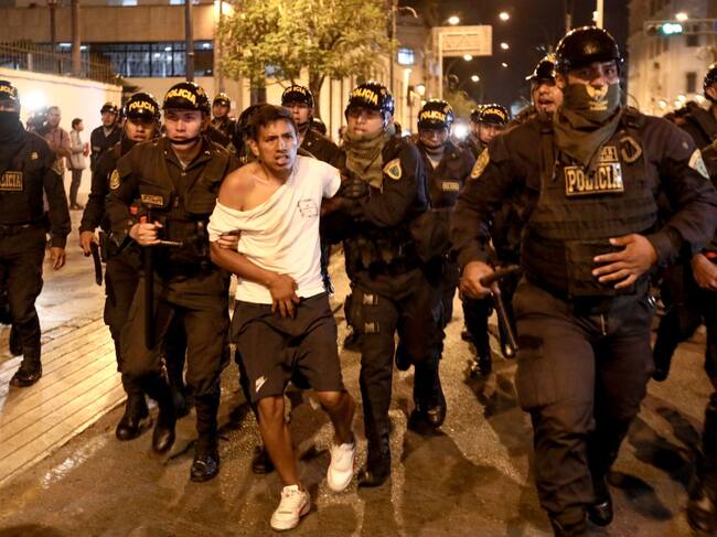 Detenido en medio de las marchas en Perú (Foto por Klebher Vasquez/Anadolu Agency via Getty Images) / Anadolu Agency