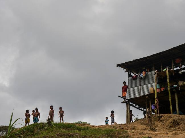 Niños indígenas embera vistos en Tasi, un pueblo rural en Alto Baudo, departamento de Choco, oeste de Colombia, el 25 de enero de 2017. Foto: LUIS ROBAYO/AFP via Getty Images. / LUIS ROBAYO