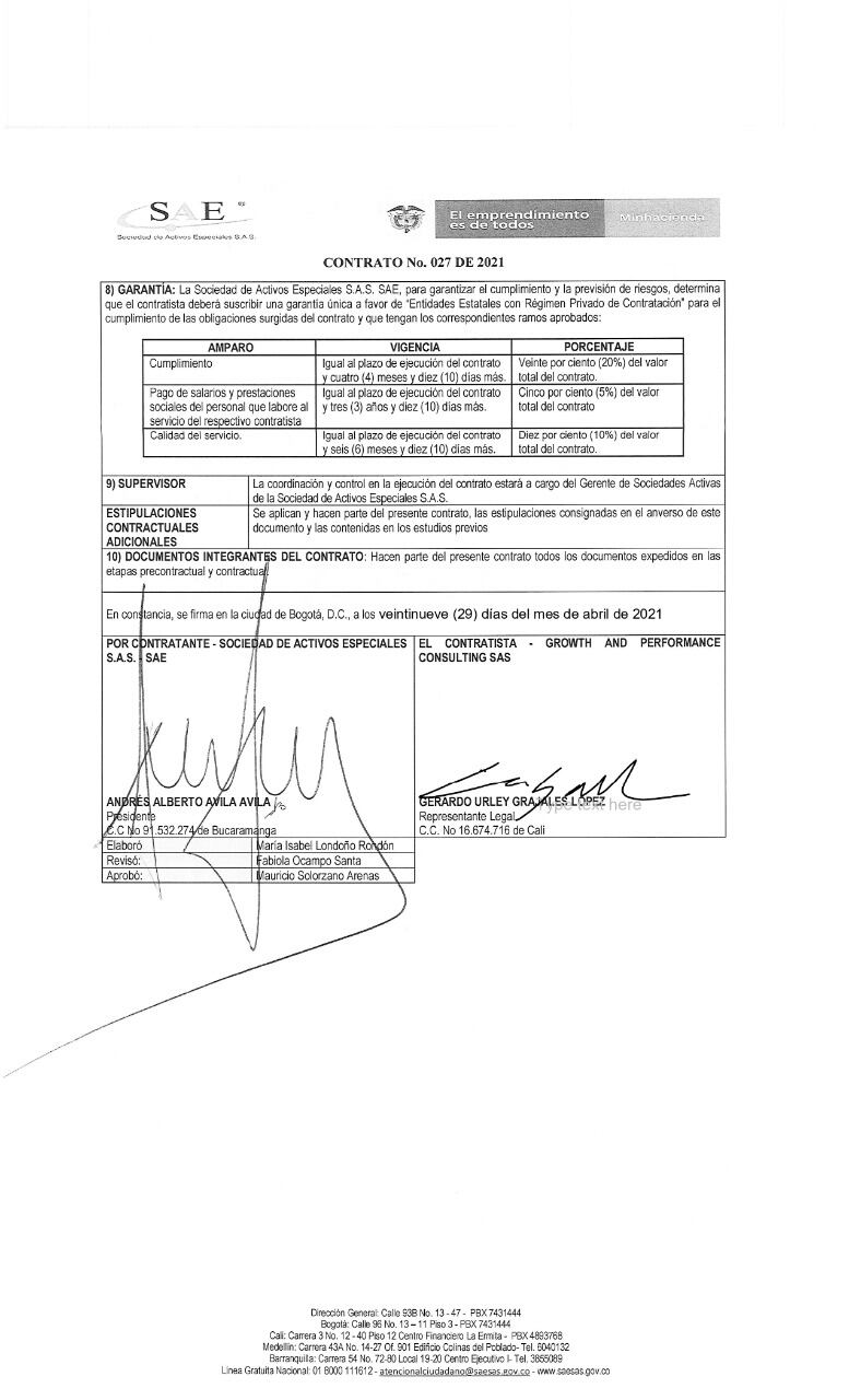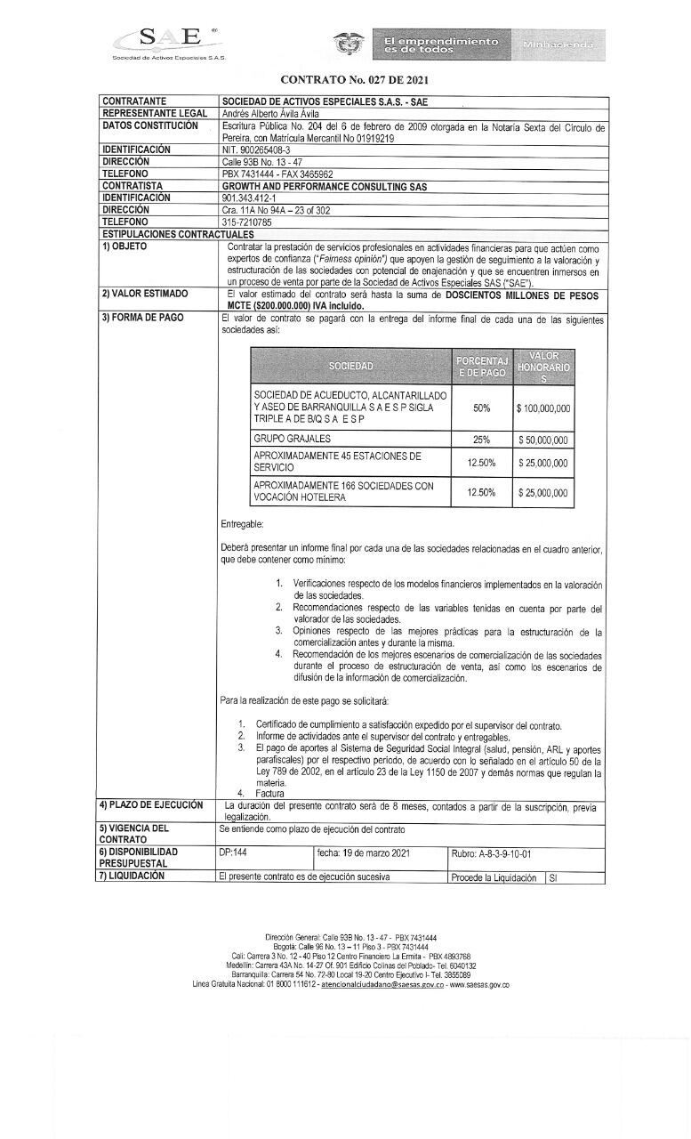 Otro punto que llama la atención con respecto a la enajenación de las acciones de la Triple A es un contrato por $200 millones que el entonces director de la SAE, Andrés Ávila, entregó a Néstor Camilo Martínez, hijo del exfiscal Néstor Humberto Martínez, con el fin de realizar una asesoría previa a la enajenación de dichas acciones, proceso que hoy está en vilo.