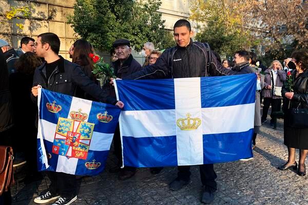 Algunos de los ciudadanos que desde antes del amanecer hacían cola de mas de una hora para rendir homenaje y besar el ataúd con los restos mortales del que fuera su monarca, portaban la bandera real griega y cada tanto se podía escuchar un “viva el rey” o “inmortal”.