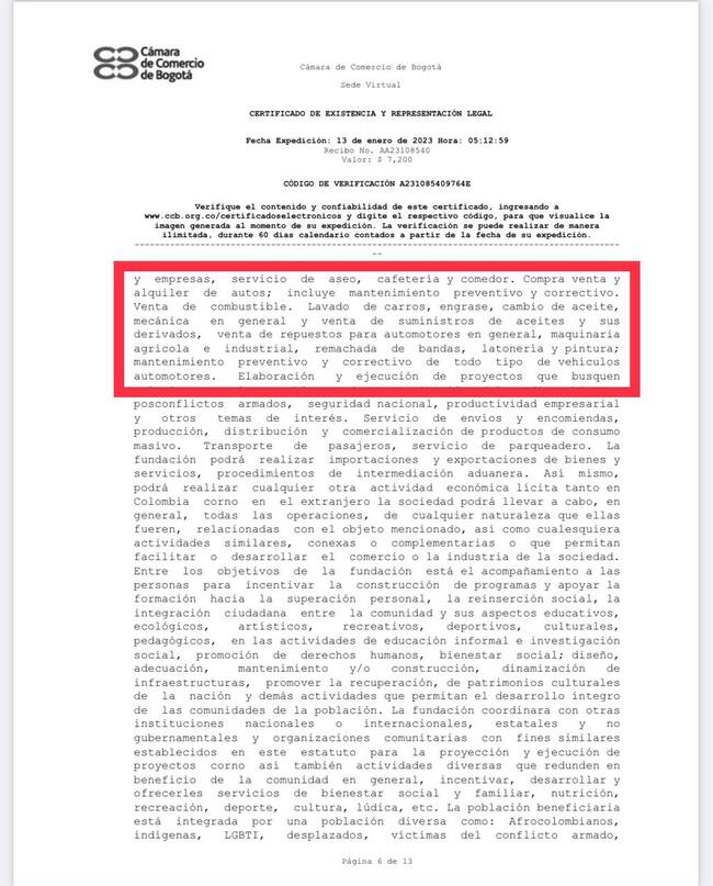 Y eso no es todo. “La fundación podrá realizar compra y venta de suministros de medicamentos farmacéuticos, fragancias y perfumería nacional o importada” así como el “monitoreo e instalación de alarmas y equipos tecnológicos para garantizar la seguridad; contra terrorismo y todo tipo de inseguridad. Circuitos cerrados de televisión, blindajes y productos especializados en seguridad cerraduras y accesorios, claves de acceso y suministros en seguridad bancaria, empresarial y electrónica. Servicios de aseo y vigilancia privada”.