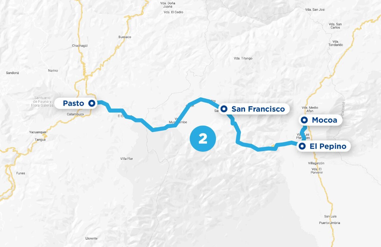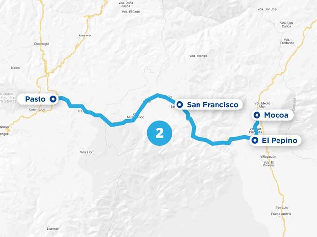 2 - Pasto – Mocoa. Para vehículos livianos, vehículos de carga hasta doble troque de 30 toneladas y buses hasta de 25 pasajeros. Se tiene habilitado el tránsito de vehículos de la siguiente forma en el sector San Francisco - El Pepino: En sentido Pasto - Mocoa de 4 a.m. a 8:00 p.m. los lunes, miércoles y viernes y en sentido Mocoa -Pasto en el mismo horario los martes, jueves y sábado. Todos los domingos se está realizando mantenimiento del tramo afirmado.