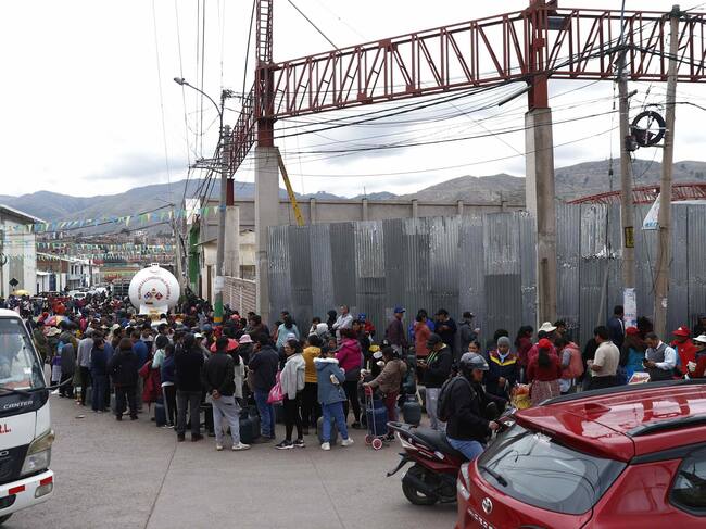 Personas hacen fila para abastecerse de gas, en Cuzco (Perú). La ciudad peruana de Cuzco comienza a sentir el desabastecimiento de productos perecederos como verduras, lácteos y carne, que escasean ostensiblemente en tiendas y supermercados, así como de combustible, debido a los bloqueos en carreteras por parte de los manifestantes antigubernamentales. Foto: EFE/Stringer / Stringer