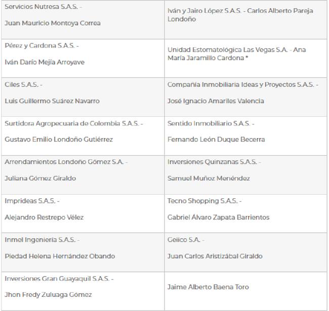 Así había quedado conformada la Cámara de Comercio de Medellín. Foto: Página web Cámara de Comercio de Medellín.