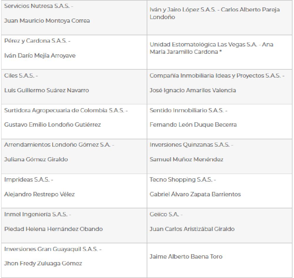 Así había quedado conformada la Cámara de Comercio de Medellín. Foto: Página web Cámara de Comercio de Medellín.