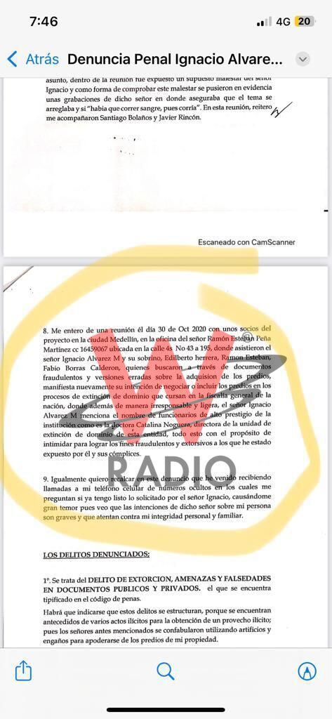 W Radio conoció en primicia una grave denuncia que hizo ante la Fiscalía General Emil Eduardo Romano Rodríguez, representante legal de la sociedad Suever S.A.S, y su abogado Felipe Alzate Gómez en la que se menciona a Ana Catalina Noguera Toro, la exfiscal que estaría relacionada con graves hechos de corrupción judicial y que en las últimas horas fue capturada.