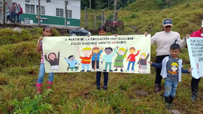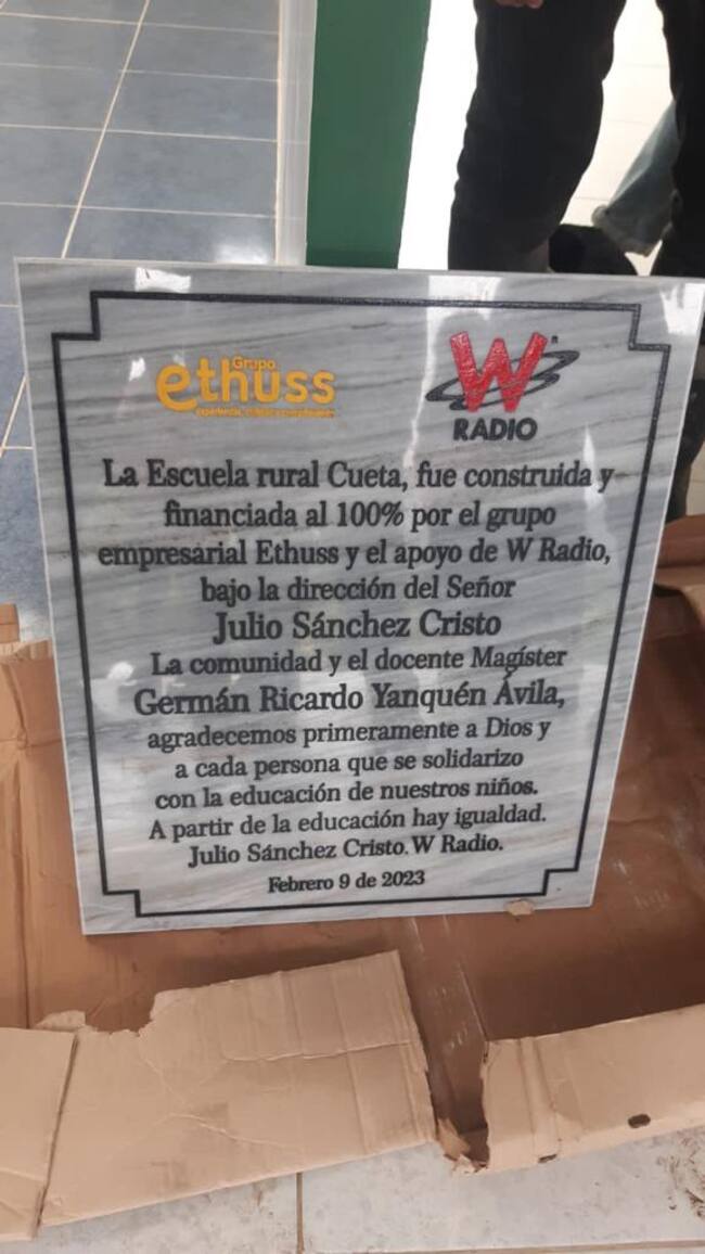 “Queremos agradecer a Grupo Ethuss por contribuir a la educación en nuestra vereda (...) Hicimos una placa conmemorativa para honrar a W Radio y a Julio Sánchez Cristo”, expresó.