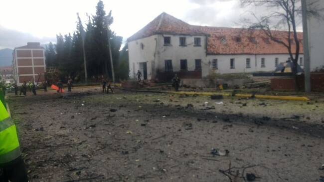 Asi quedó parte de la Escuela de Cadetes General Santander en Bogotá por explosión de carro bomba. Foto: Colprensa / Archivo particular