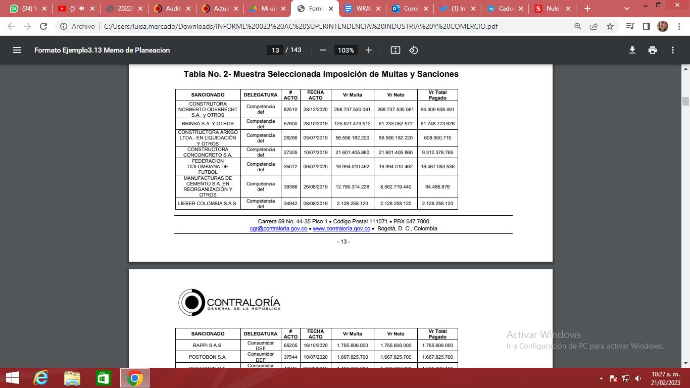 La W conoció un informe de la Contraloría que advierte deficiencias en las multas que ha impuesto la SIC o por conductas anticompetitivas. A la constructora Norberto Odebrecht le pusieron una multa de $268.000 millones y ha pagado $94.309 millones y a la Constructora Arkgo, involucrada en el caso IDU, le pusieron una multa por $56.556 millones.