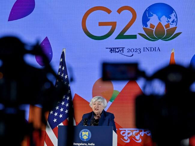 Secretaria del Tesoro de Estados Unidos, Janet Yellen durante el G20 en India, febrero de 2023. Foto: MANJUNATH KIRAN/AFP via Getty Images. / MANJUNATH KIRAN