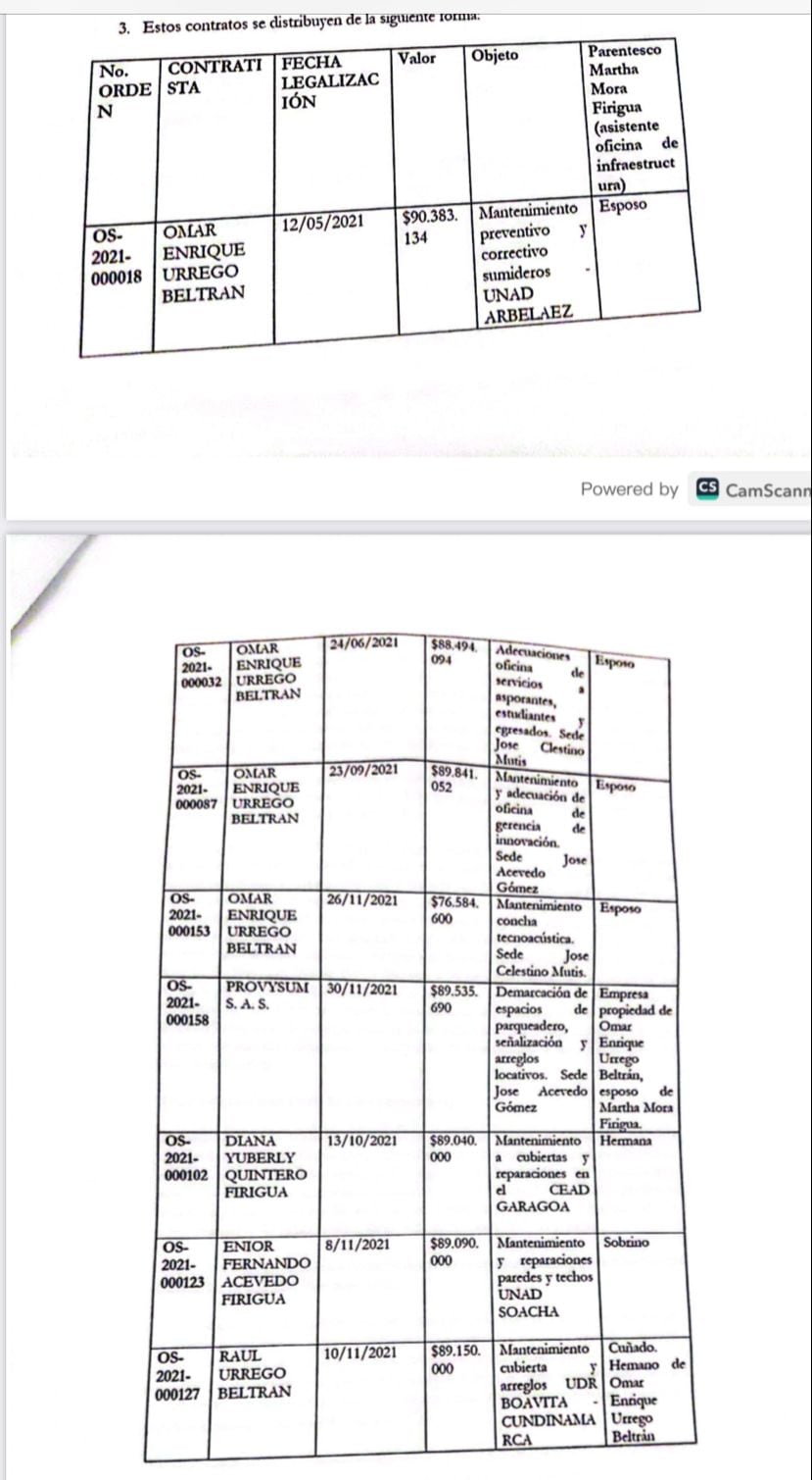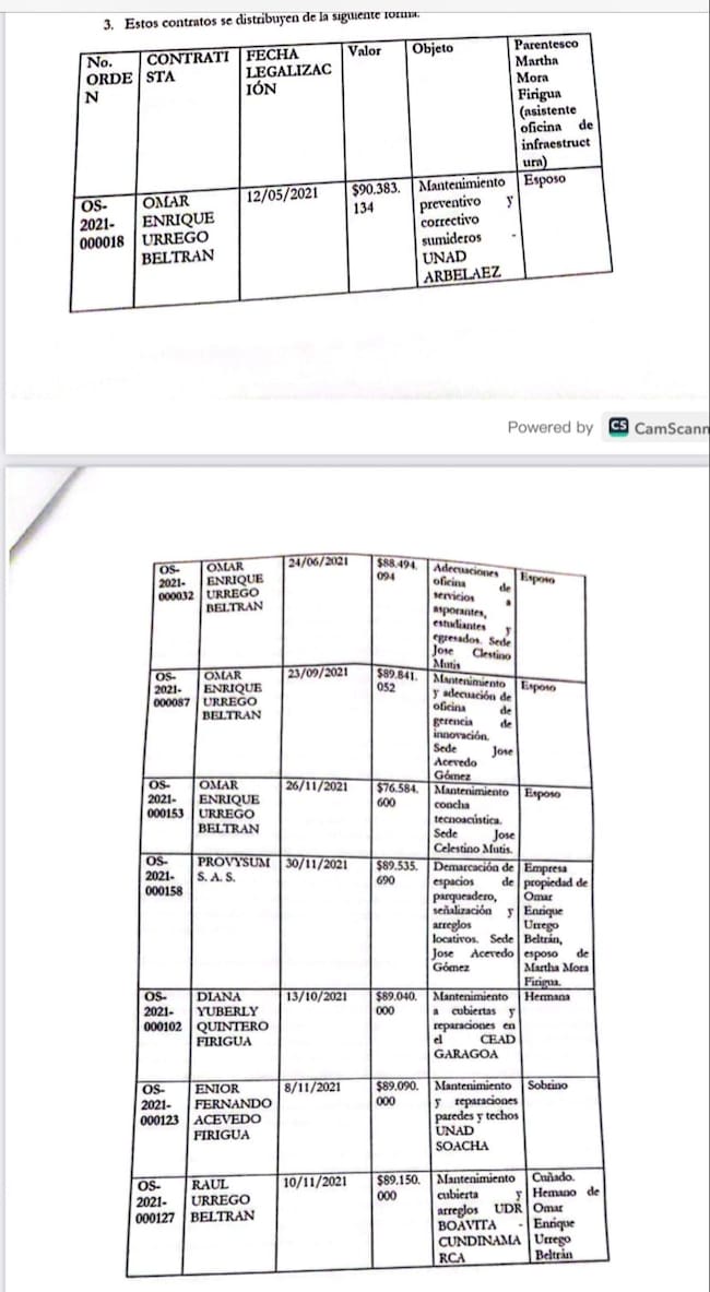 “El que está nombrado como jefe de control interno es el cuñado de la señora Constanza Venegas, secretaria general de la Universidad Nacional Abierta y a Distancia, quien a su vez tiene contratada a su cuñada como jefa de contratación. Eso es todo montado”, afirmó.