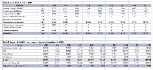 Tabla presupuesto reforma a la salud