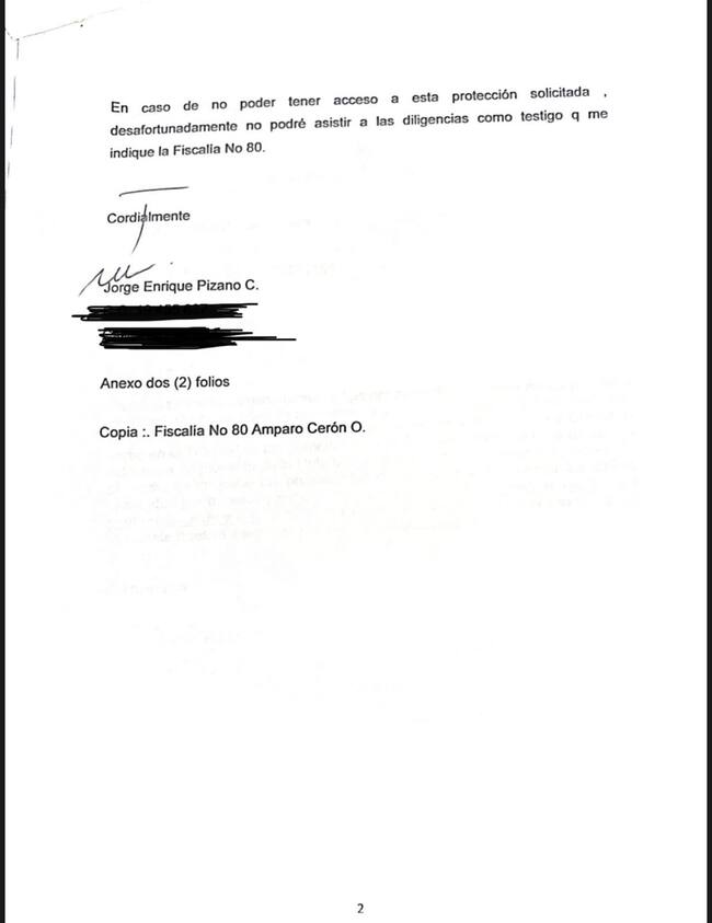 Señaló que la carta fue enviada el 27 de agosto de 2018, meses antes de la muerte en extrañas circunstancias de Pizano, que se presentó el 8 de noviembre del mismo año.