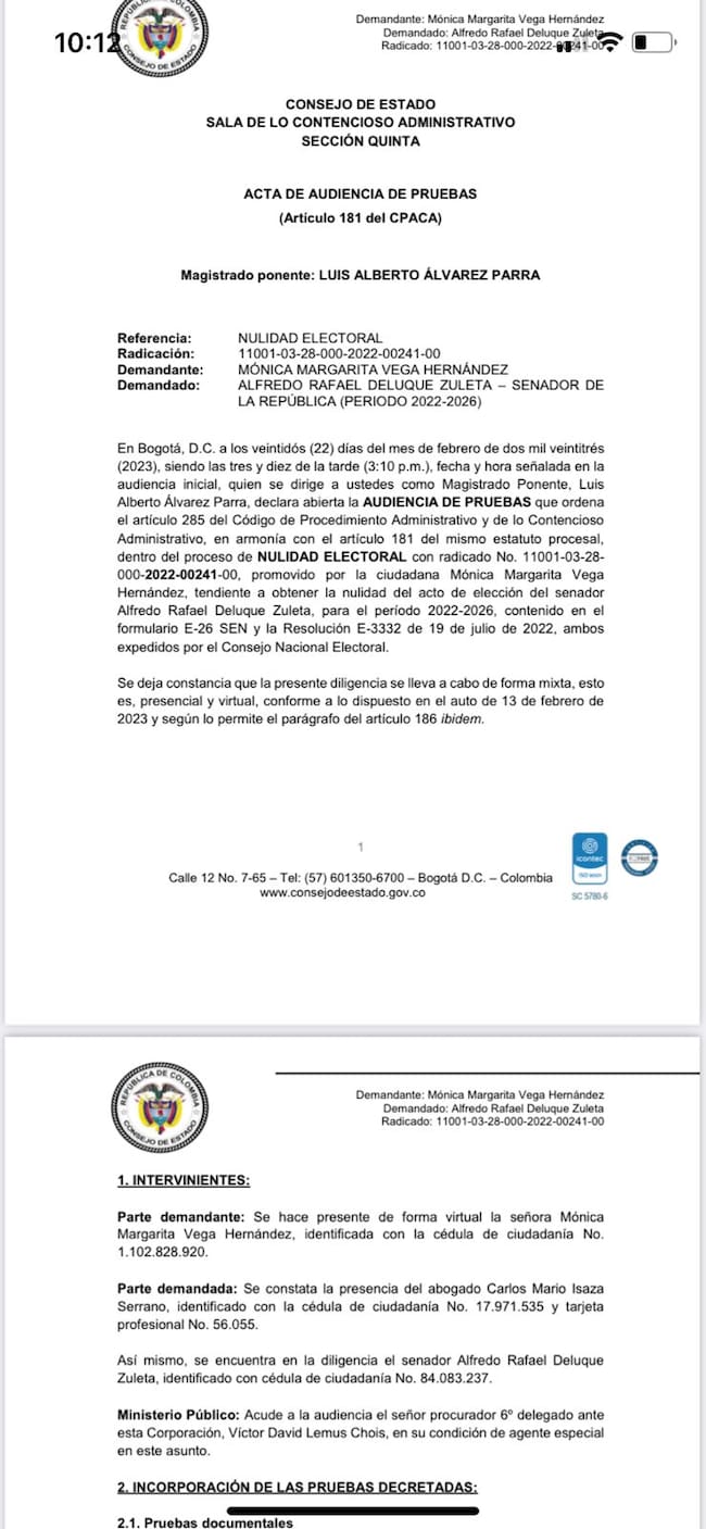 El Consejo de Estado reanuda la audiencia de pruebas en contra de la elección del senador, Alfredo Rafael Deluque del partido de La U, por doble militancia, por presuntamente haber apoyado a Ape Cuello durante la campaña política de 2022.
