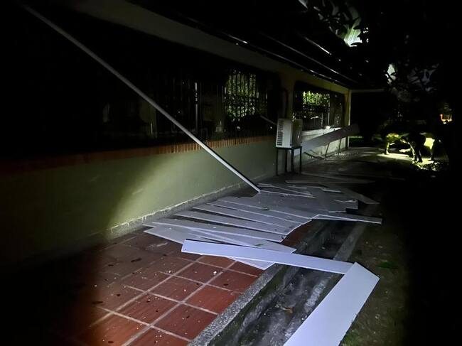 Así quedó el casino de oficiales en el cantón San Jorge en Saravena, Arauca, tras ataque con explosivos por parte del ELN. Un oficial herido. Foto: Suministrada.