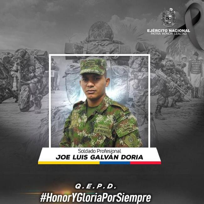 Finalmente, indicaron que el soldado profesional Joe Luis Galván Doria era oriundo de la ciudad de Montería, Córdoba, llevaba 11 años de servicio en la institución, era casado y deja huérfana a una pequeña hija.