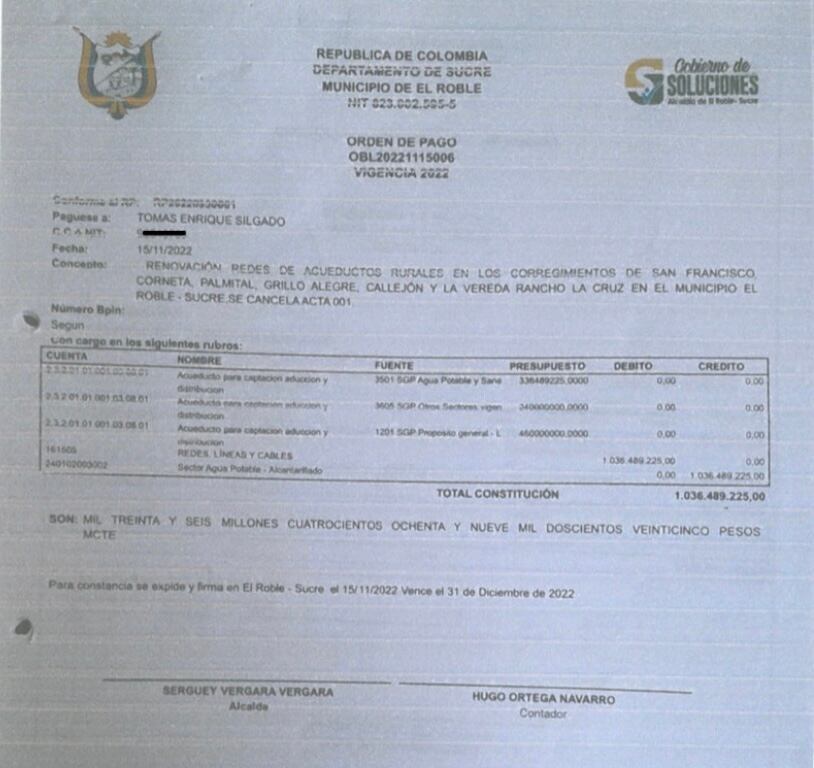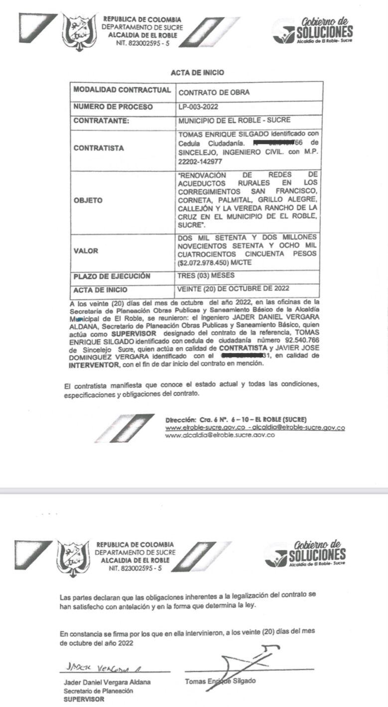Varios habitantes del municipio de El Roble, en Sucre, denuncian presuntos actos de corrupción en un contrato firmado por la Alcaldía, por $2.072′978.450, para renovar las redes de los acueductos de los corregimientos San Francisco, Corneta, Palmital, Grillo Alegre, Callejón y la Vereda Rancho de la Cruz.