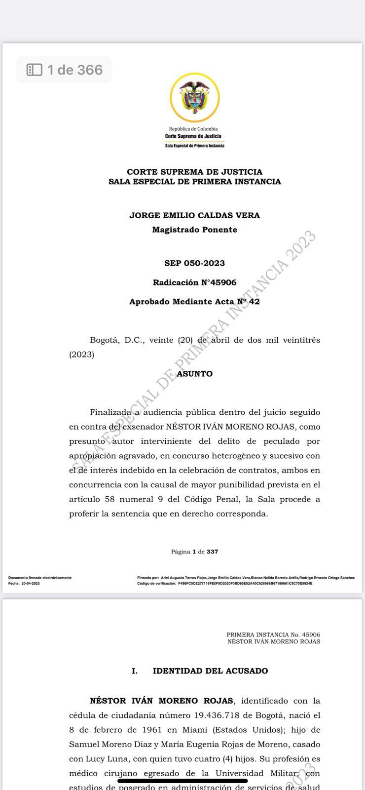 La Corte Suprema de Justicia condenó al exsenador Iván Moreno a cinco años y cinco meses de prisión por irregularidades en un contrato de ambulancias, lo que se conoció como el carrusel de la contratación cuando su hermano Samuel Moreno fue alcalde de Bogotá.
