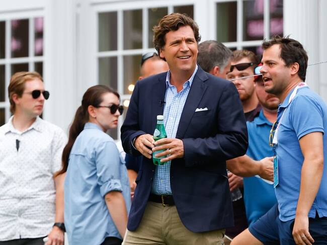 BEDMINSTER, NJ - JULY 31: Tucker Carlson of Fox News at the 16th tee during the 3rd round of the LIV Golf Invitational Series Bedminster on July 31, 2022 at Trump National Golf Club in Bedminster, New Jersey. (Photo by Rich Graessle/Icon Sportswire via Getty Images) / Icon Sportswire