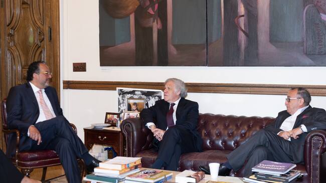 El magistrado sostuvo un encuentro con el secretario general de la Organización, Luis Almagro, en el cual dialogaron sobre los avances del tribunal transicional y además se abrió la puerta a posibles “acciones de cooperación”. A dicha reunión también asistió el embajador Luis Ernesto Vargas.