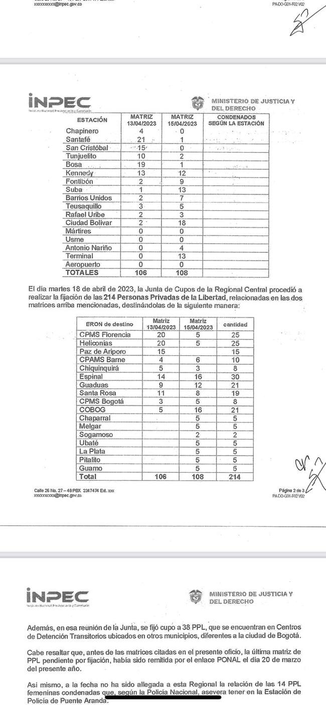 En este contexto, las inspecciones realizadas por el magistrado Ibáñez Najar han empezado a producir sus primeros efectos positivos por el respeto de la dignidad de las personas privadas de la libertad, puesto que el INPEC acaba de habilitar cupo carcelario para 214 personas condenadas que están recluidas en Centros de Detención Transitoria, las cuales, por mandato legal, deben cumplir su pena en un establecimiento de reclusión del orden nacional o penitenciaria.