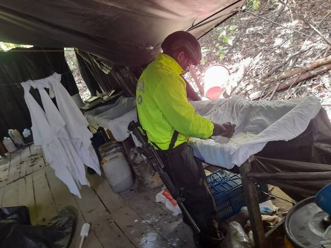 A través de hombres de Antinarcóticos e Inteligencia de la Región Cinco de Policía y en coordinación con tropas de la Brigada 30 del Ejército Nacional, llegaron a la Vereda Versalles zona rural del municipio de Tibú y ubican una infraestructura utilizada para el procesamiento de clorhidrato de cocaína.
