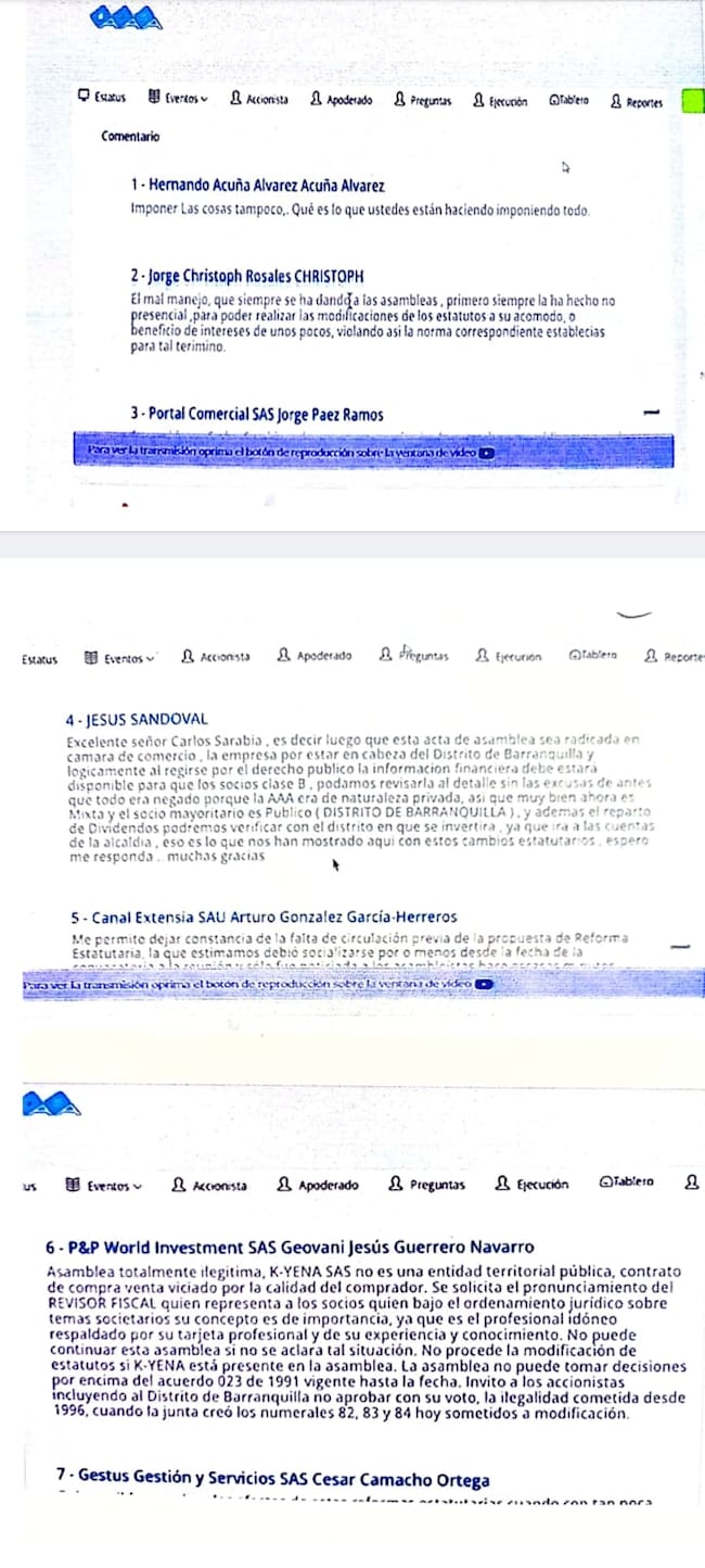En el documento de impugnación aseguraron que no se cedió la palabra a ningún participante, no hubo voz ni voto, ni se permitió la deliberación de los asistentes, lo que violó el derecho fundamental de los accionistas a "deliberar y decidir".