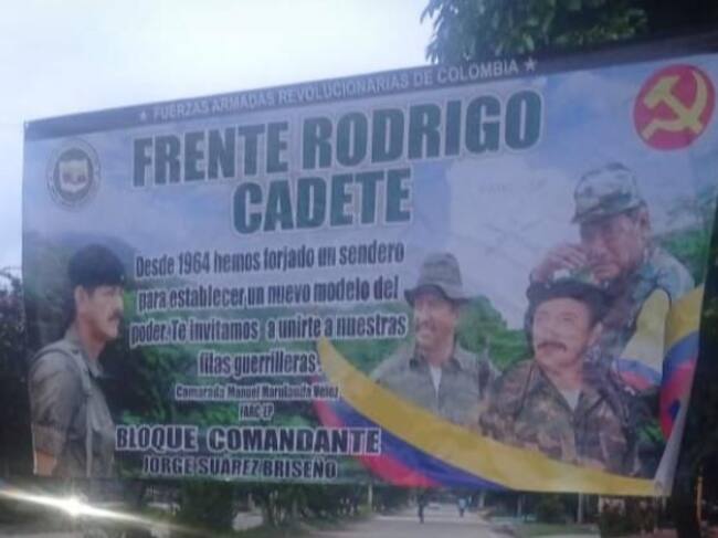 “El municipio amaneció con varias vallas del grupo Rodrigo Cadete invitando a la comunidad de Cartagena del Chairá a unirse a la filas, en este momento la comunidad siente temor porque está pasando esto en el casco urbano, la gente tiene miedo porque estando la fuerza pública en la madrugada instalan estas vallas”.