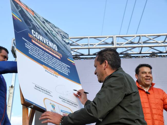 Juan Carlos Saldarriaga, alcalde de Soacha, firmó un convenio interadministrativo con el el Gobernador de Cundinamarca Nicolás García con el objetivo de aunar esfuerzos para el desarrollo del proyecto de la Vía Las Torres con el fin de fortalecer la infraestructura vial, mejorando la movilidad y creando conexión e integración regional.